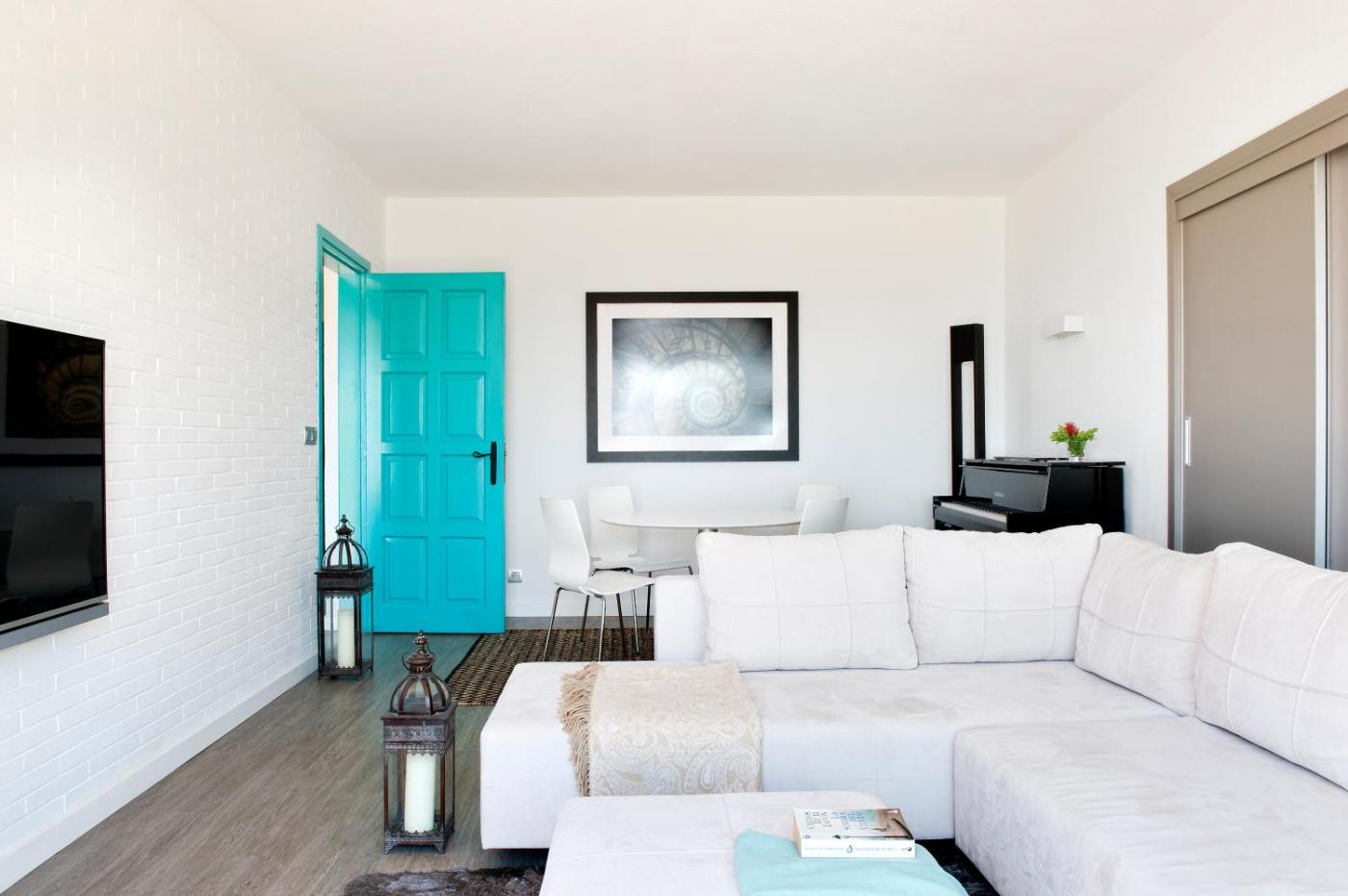 The modern, stylish apartment features a private terrace with a dining table, sun bed and sea views. It has a living room with a flat-screen TV with free Netflix service. Free high speed WiFi is also available.