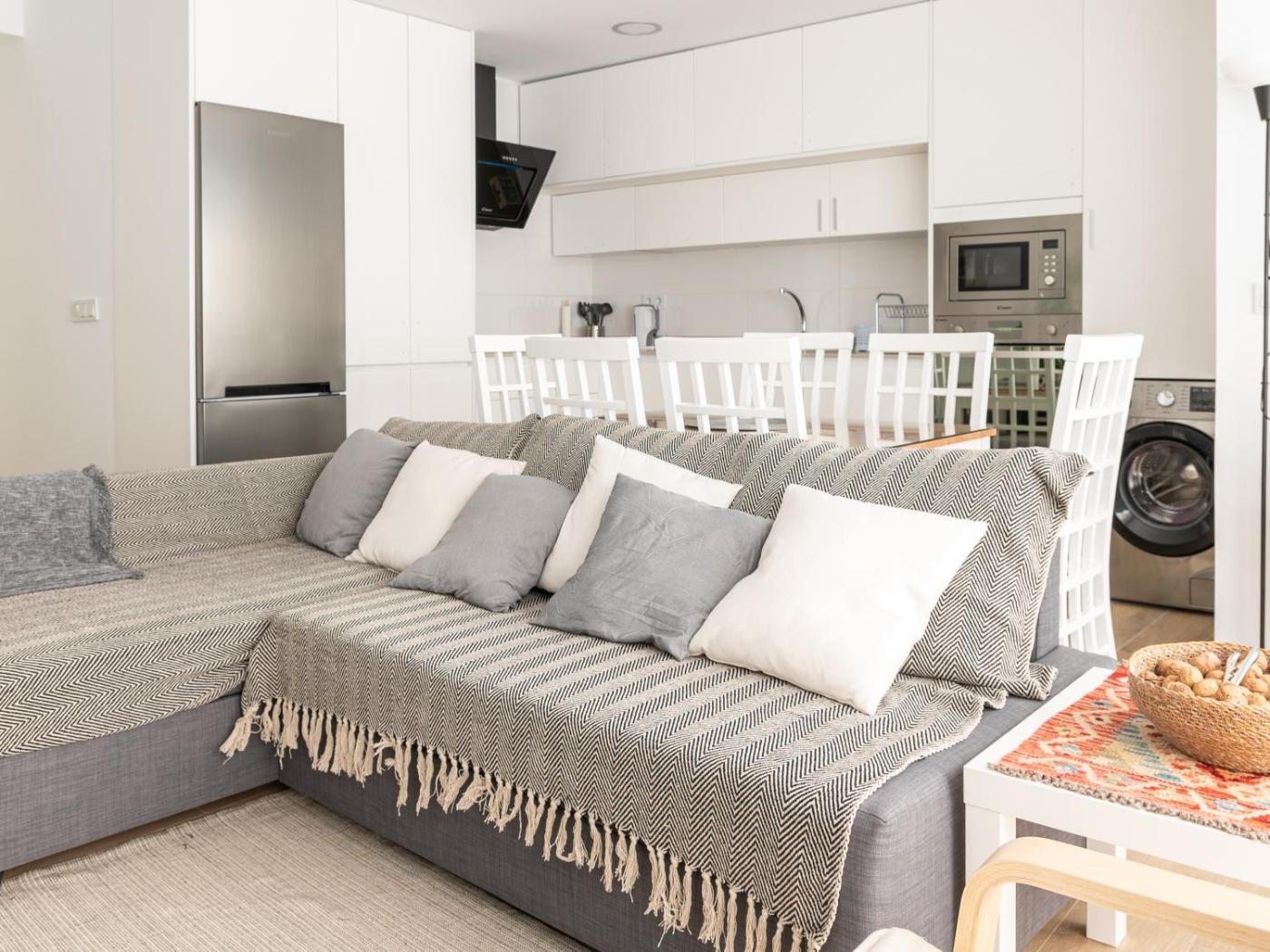 Two-Bedroom Apartment. The air-conditioned apartment features 2 bedrooms and 1 bathroom with a bath and a shower. The well-fitted kitchen has a refrigerator, an oven, a microwave and a toaster. The apartment offers a washing machine, a tea and coffee maker, a dining area, a sofa and a flat-screen TV. The unit offers 3 beds.