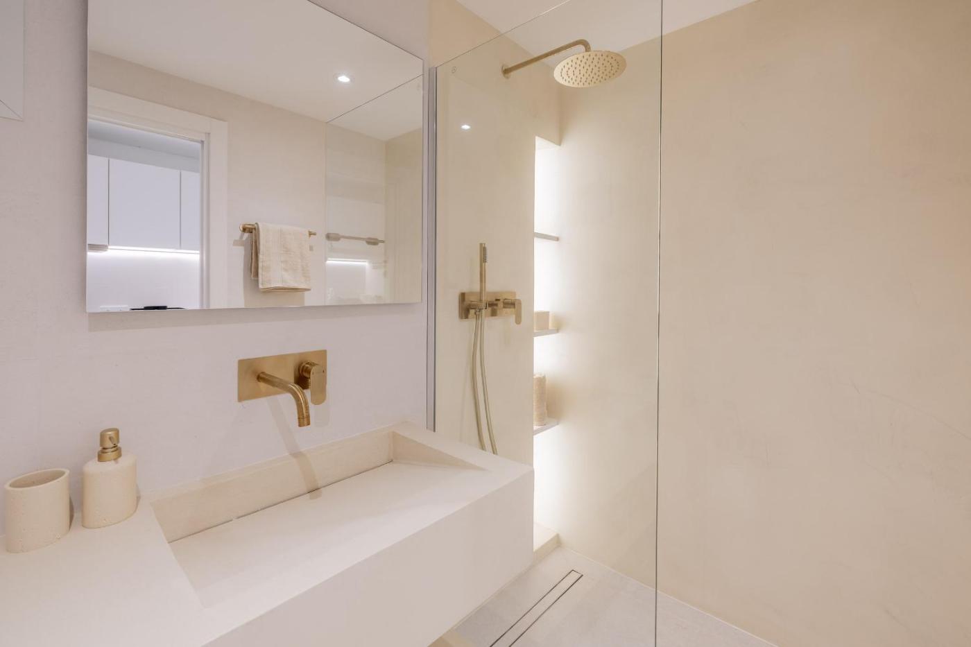 One-Bedroom Apartment. This air-conditioned apartment comes with 1 living room, 1 separate bedroom and 1 bathroom with a bath or a shower. In the well-fitted kitchen, guests will find a stovetop, a refrigerator, a dishwasher and kitchenware. Boasting a terrace with sea views, this apartment also features a washing machine and a flat-screen TV. The unit has 2 beds.
