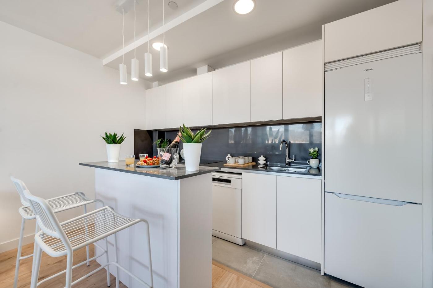 Three-Bedroom Apartment. The pool with a view is a top feature of this apartment. This spacious apartment comes with 1 living room, 3 separate bedrooms and 2 bathrooms with a shower and free toiletries. In the kitchen, guests will find a stovetop, a refrigerator, a dishwasher and kitchenware. This air-conditioned apartment includes a dining area, a flat-screen TV with streaming services a washing machine and a terrace. The unit has 5 beds.