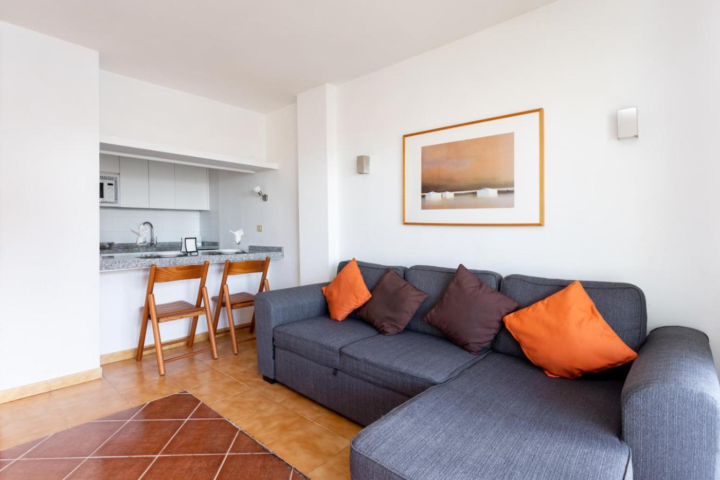 One-Bedroom Apartment. This spacious apartment comprises 1 living room, 1 separate bedroom and 1 bathroom with a shower and free toiletries. In the well-equipped kitchen, guests will find a refrigerator, kitchenware, an oven and a microwave. Featuring a terrace with sea views, this apartment also provides a washing machine and a TV. The unit offers 2 beds.