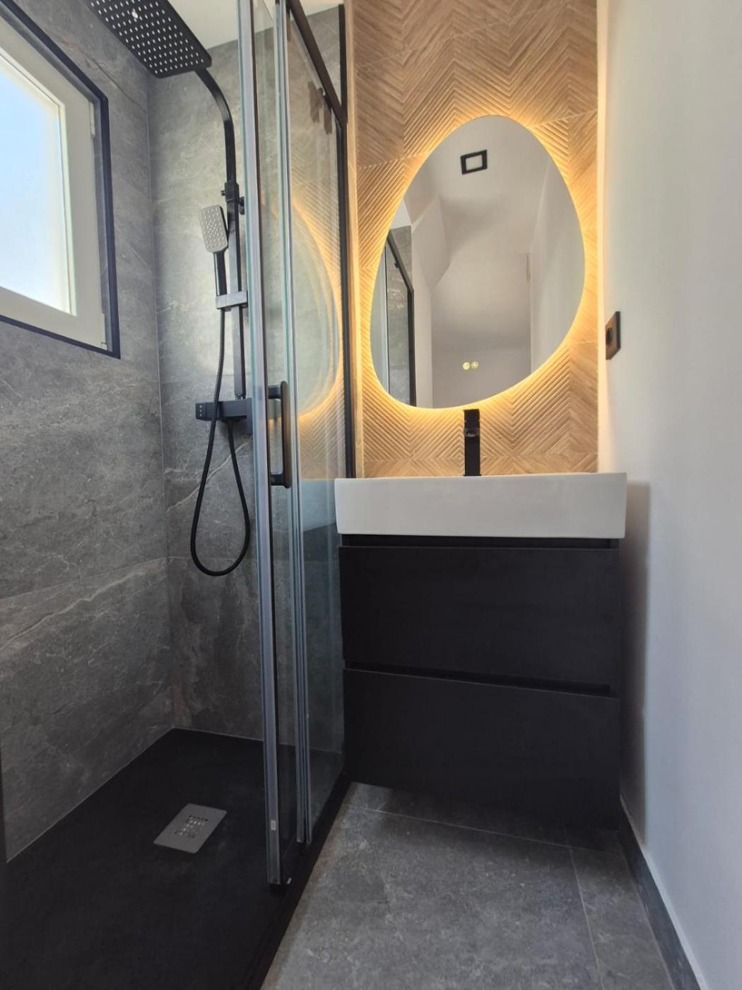 Three-Bedroom Apartment. This spacious apartment consists of 1 living room, 3 separate bedrooms and 1 bathroom with a shower and a hairdryer. The well-fitted kitchen has a refrigerator, a dishwasher and kitchenware. The apartment features air conditioning, a washing machine, a coffee machine as well as a terrace with sea views. The unit offers 4 beds and 1 futon.