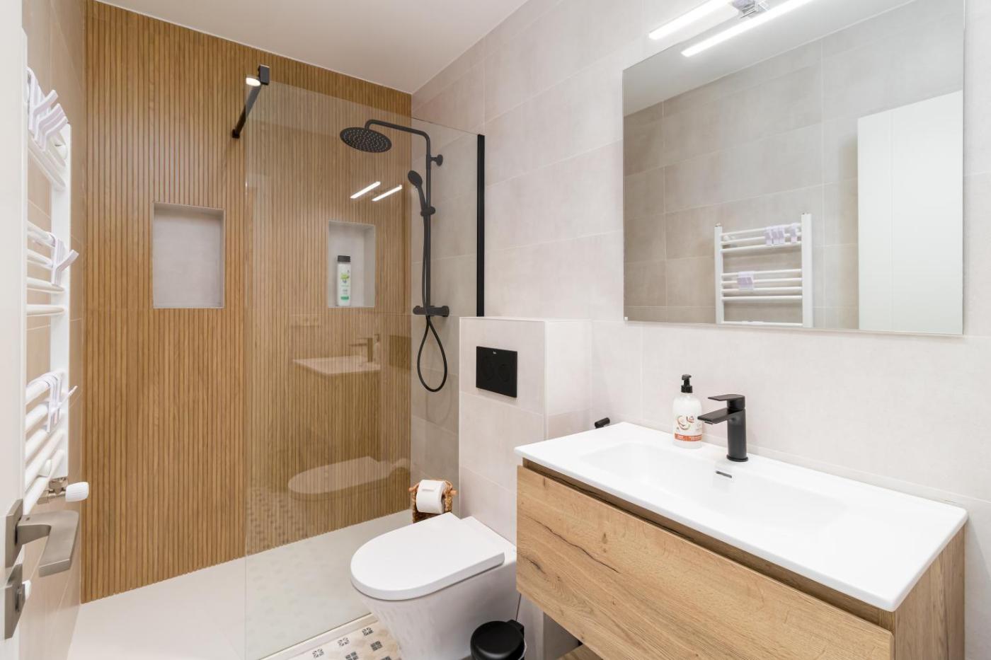 Two-Bedroom Apartment. Featuring a private entrance, this spacious apartment also comprises 1 living room, 2 separate bedrooms and 1 bathroom with a shower. Guests can make meals in the kitchen that comes with a refrigerator, a dishwasher, kitchenware and an oven. The apartment provides a washing machine, a tea and coffee maker, a seating area, a dining area, as well as a flat-screen TV. The unit offers 3 beds.