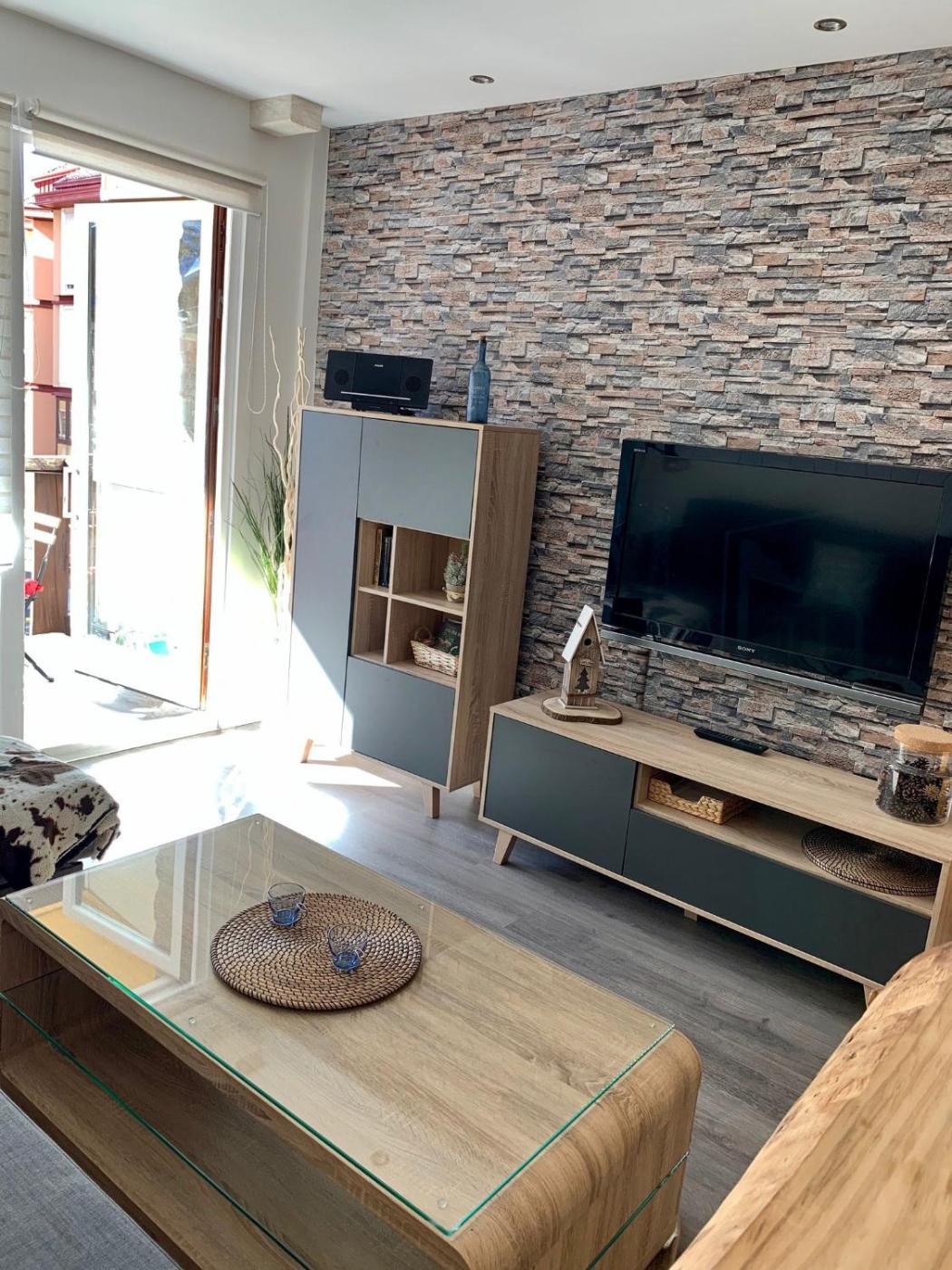One-Bedroom Apartment. This apartment comprises 2 living rooms, 1 separate bedroom and 1 bathroom with a shower and free toiletries. Guests can make meals in the kitchen that comes with a stovetop, a refrigerator, kitchenware and a microwave. Featuring a terrace with mountain views, this apartment also provides a coffee machine and a flat-screen TV. The unit offers 3 beds.
