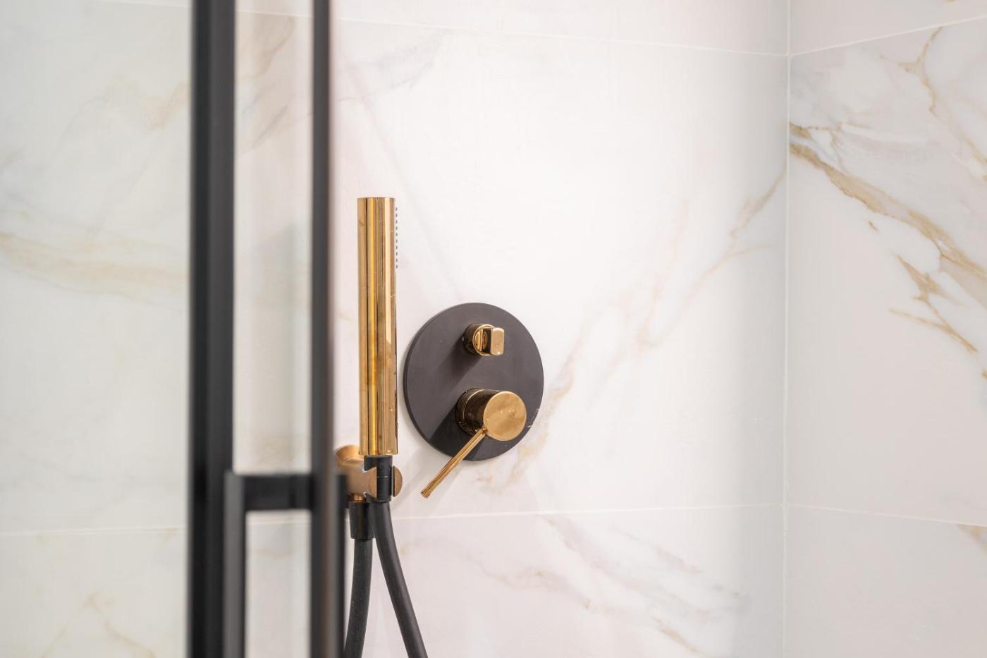 One-Bedroom Deluxe Apartment. Featuring a private entrance, this air-conditioned apartment is comprised of 1 living room, 1 separate bedroom and 1 bathroom with a walk-in shower and a hairdryer. In the well-equipped kitchen, guests will find a stovetop, a refrigerator, a dishwasher and kitchenware. The apartment features parquet floors, a seating area with a flat-screen TV with streaming services, a washing machine, soundproof walls, as well as a coffee machine. The unit offers 2 beds.